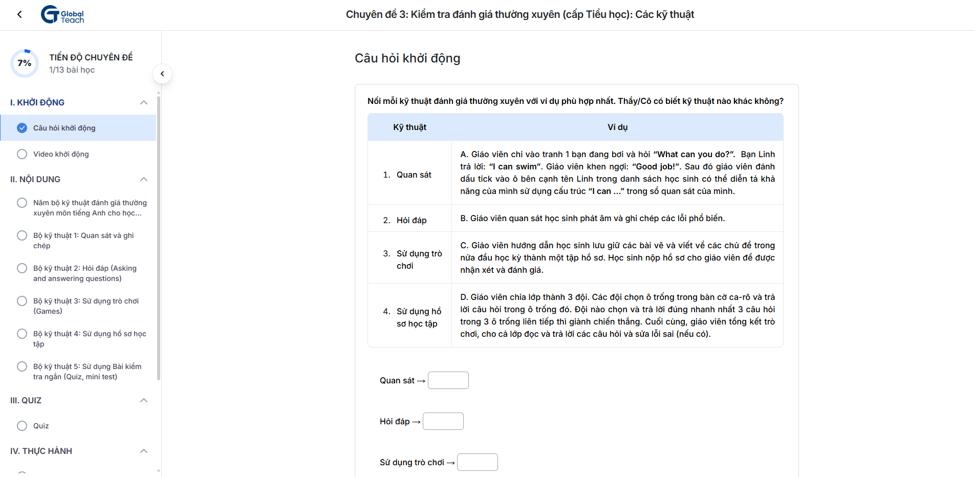 - Yêu cầu: Học viên cần xem đầy đủ video để được đánh dấu là hoàn thành.